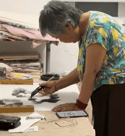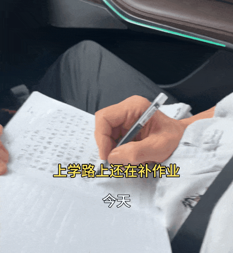 在上学的路上,爷爷还在奋笔疾书。
